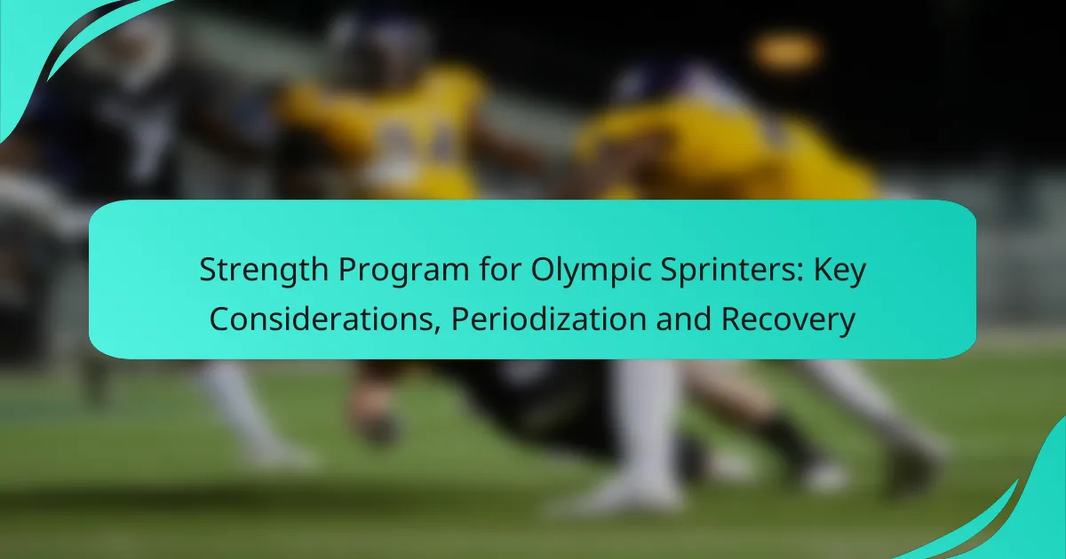 Key considerations for strength training in Olympic sprinters include the development of explosive strength, muscle hypertrophy, and proper biomechanics. These elements are crucial for enhancing sprint performance and minimizing injury risk.